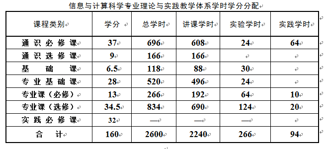 实践环节包括课程设计、专业综合实习、毕业设计(论文)、毕业实习等,一般安排32周左右。主要专业实验有C语言程序设计、数据结构、算法设计与分析、数学软件及应用、数值分析、多元统计分析、最优化方法、数据库原理及应用、Java程序设计等课程的实验。