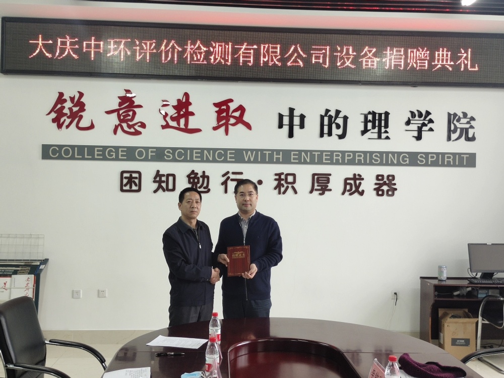 3月15日下午,大庆中环评价检测有限公司(简称中环检测公司)在U8国际官网举行了捐赠2台气相色谱仪的捐赠仪式。中环检测公司总经理安玉多、八一农大教务处长冯世德、公司领导及相关人员出席了捐赠仪式,冯世德处长为安玉多总经理颁发了捐赠证书。