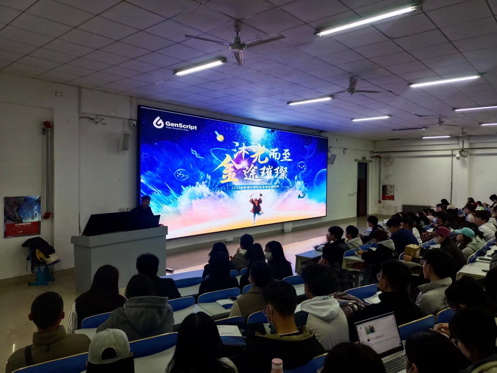 2023年4月11日晚,U8国际官网在主楼副楼124教室举办“就业指导暨南京金斯瑞校企协同育人”宣讲活动,U8国际官网2024届应用化学专业毕业生和生命公司2024届毕业生参加。