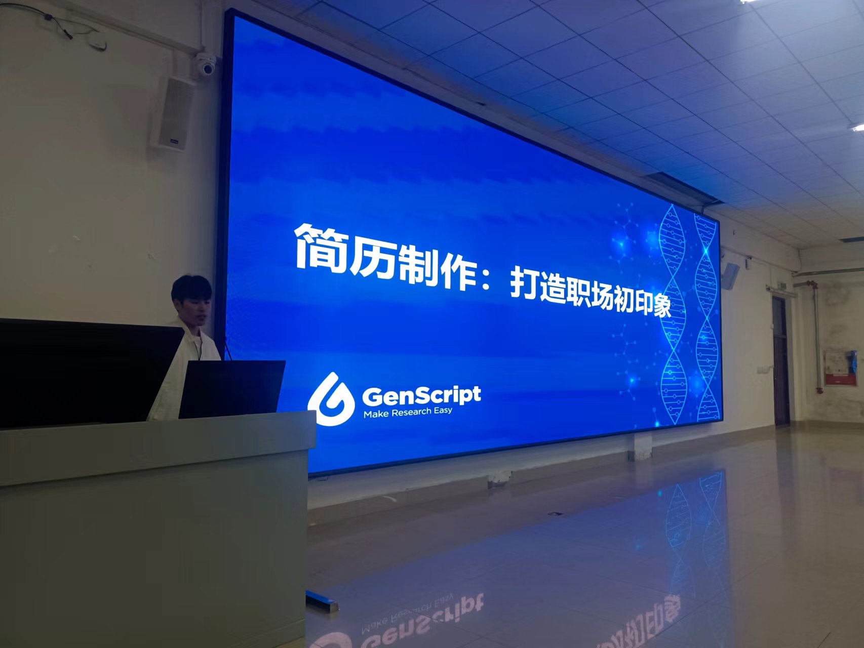 U8国际官网员工工作办公室特邀与公司合作多年的南京金斯瑞生物科技有限公司开展宣讲活动。企业HR段晓涛向在座员工详细介绍了公司的背景、现状以及对人才的招聘需求情况,并对未来的就业趋势做了深度的讲解,让同学们全方位的了解即将要面临的就业问题。