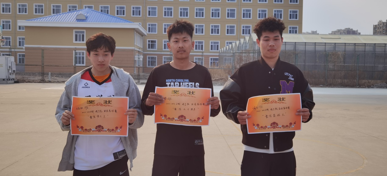 比赛共有六支参赛队伍,由积分制决定排名先后,经各个队伍的激烈角逐,最终获得冠军的球队为大三年级代表队。金家辉同学荣获最佳三分投手,王安旭同学荣获得分王,王彦龙同学荣获篮板王。