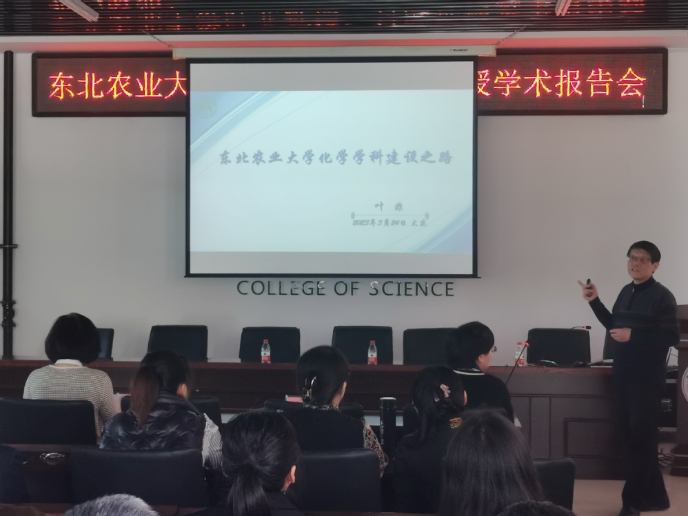叶非教授做了题为“东北农业大学化学团队建设之路”的专题报告。他结合自身工作经历,介绍了东北农业大学化学学科的建立过程,完成了“化学工程与技术”由工学向理学“化学”学科调整,获得生物与医药博士专业学位点等工作的宝贵经验。
