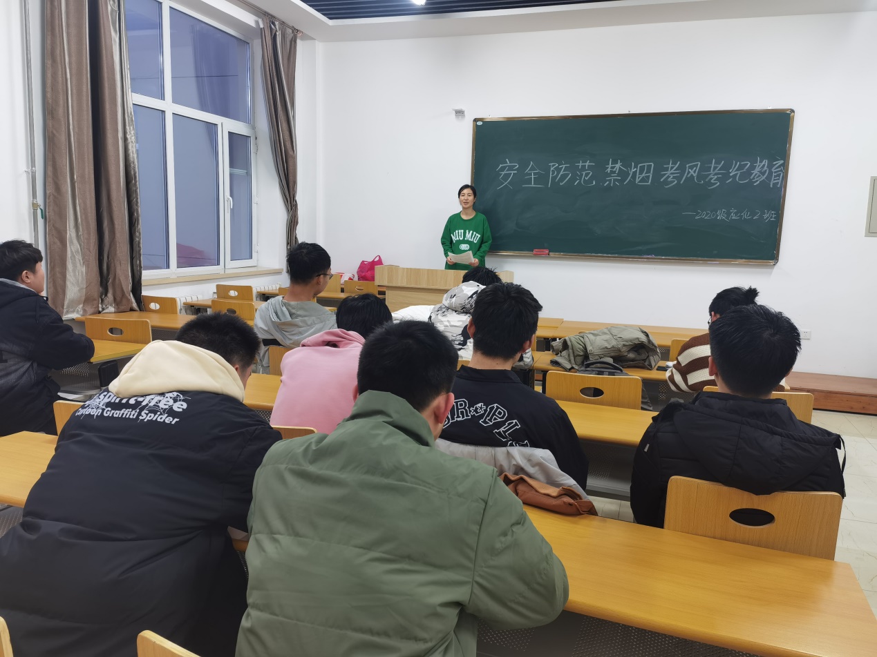 各班级班主任围绕考风考纪、安全教育、寝室管理、校园禁烟及电信诈骗等方面,号召同学们以诚实守信为荣,考试违纪为耻,杜绝考试作弊的行为,不可触及红线。在安全教育方面,告诫同学们注意寝室卫生及安全防范意识,警钟长鸣,谨记安全无小事,使同学们充分认识到人身财产安全的重要性。