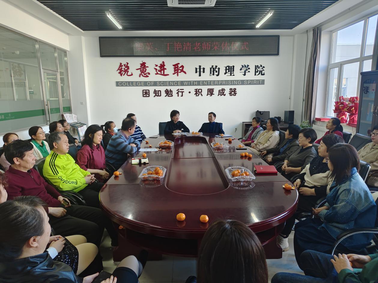 1月9日下午,U8国际官网于基础教学实验楼610室举行梁英、丁艳清老师荣休仪式,公司领导班子和各系部教师代表参加座谈会,会议由工会主席吴海涛主持。