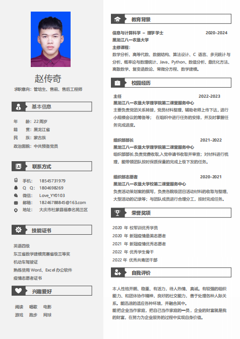在本次比赛中同学们积极展现自我,作品内容完整、表述清晰、重点突出、创意新颖、美观大方,选手根据自己的求职意向设计简历内容,突出专业特色、自身与意向岗位的匹配度,体现了较高的设计水平和职业素养。下面,让小编带领大家一起来欣赏这些优秀的作品吧!