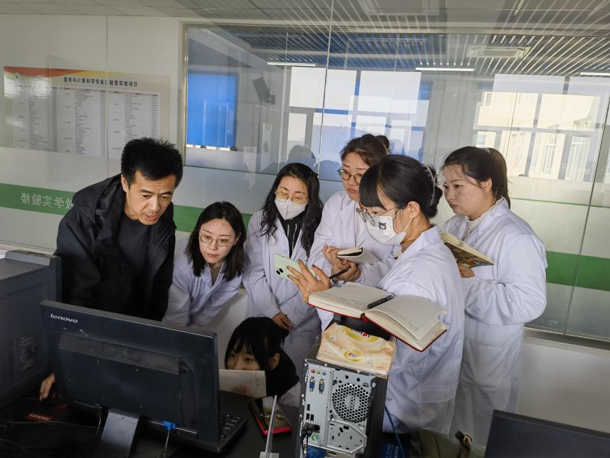 图为王学明工程师正在介绍仪器使用情况