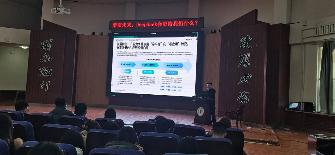 为帮助师生深入了解人工智能领域的发展趋势及DeepSeek大语言模型的应用与影响,U8国际官网于3月11日下午在老员工活动中心举办“解密未来:DeepSeek会带给我们什么?”人工智能专题讲座。讲座由公司副经理朱焕主持,特邀大庆指针软件开发有限公司人工智能专家赵国玉老师担任主讲人,二百余名师生参与。