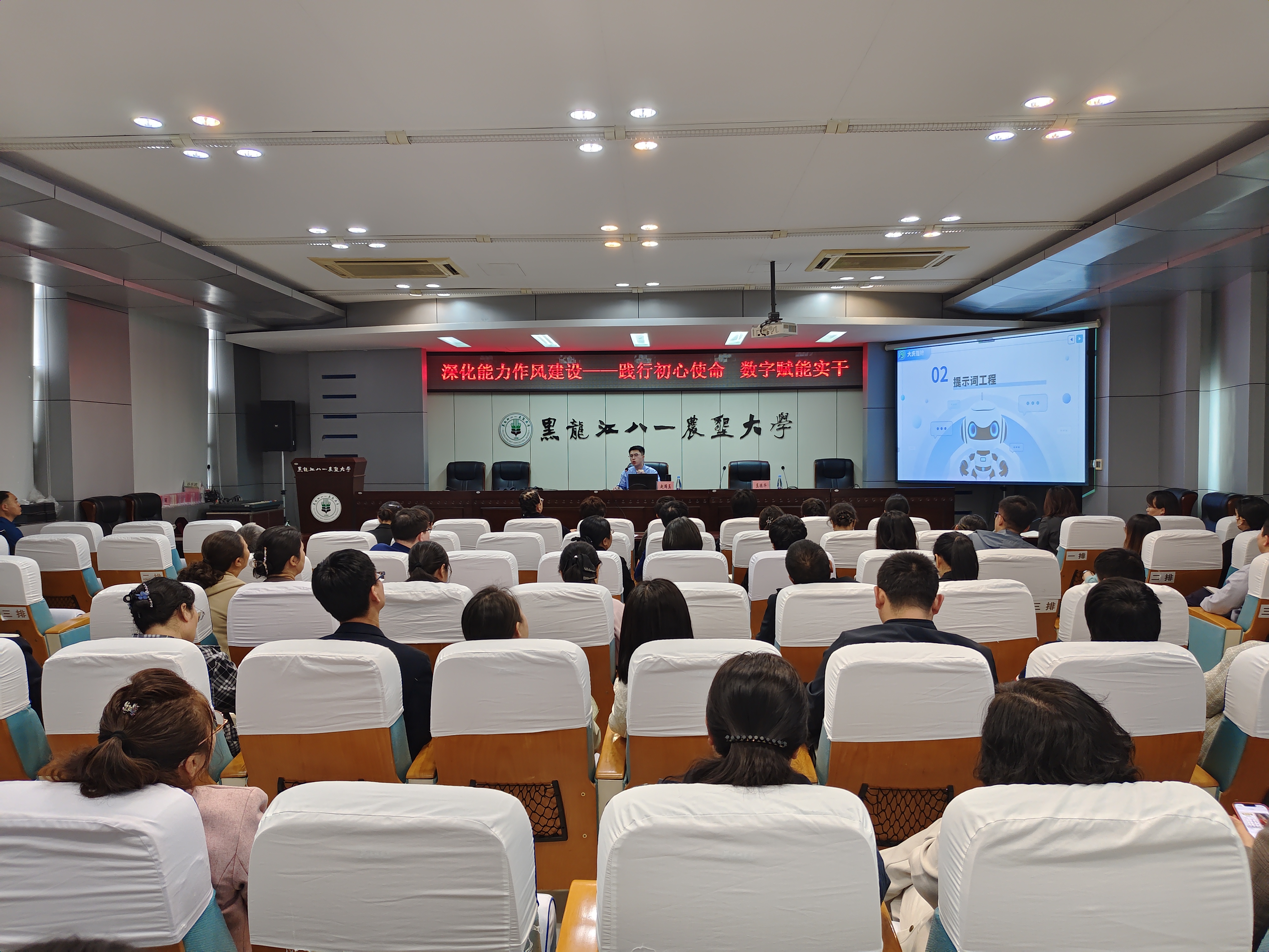本次活动特邀大庆指针软件开发有限公司AI算法工程师赵国玉老师。在报告中,赵国玉老师从多个维度深入剖析了数字技术在工作场景中的强大应用与无限潜力。他首先介绍了DeepSeek相关知识,并详细讲解了提示词工程,让教职工们了解到如何通过精准的提示词引导AI更好地完成任务。他结合实际案例,阐述了DeepSeek如何助力高效办公,提高工作效率,深入讲解了数字技术在工作场景中的强大应用与潜力,案例详实、讲解生动。